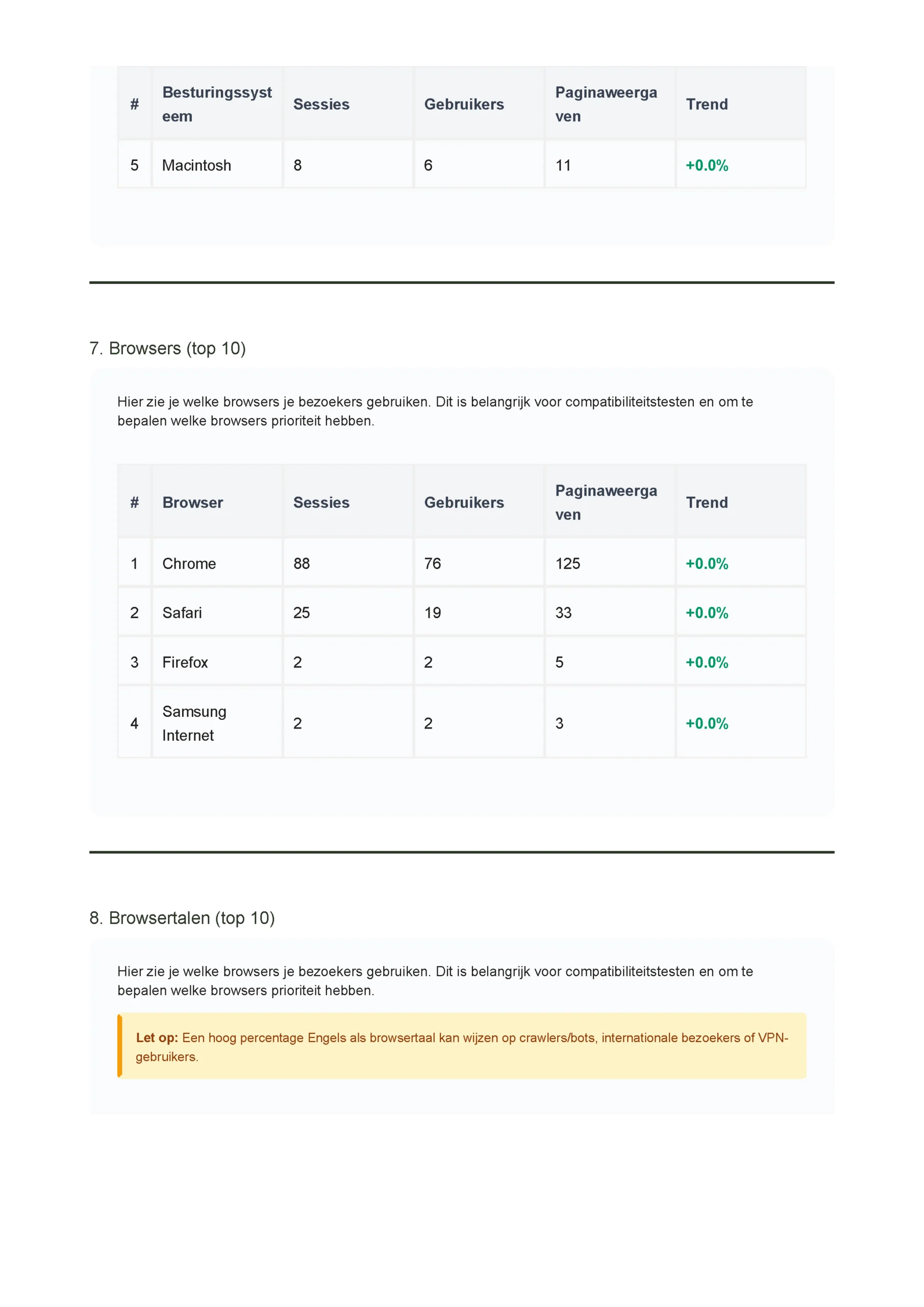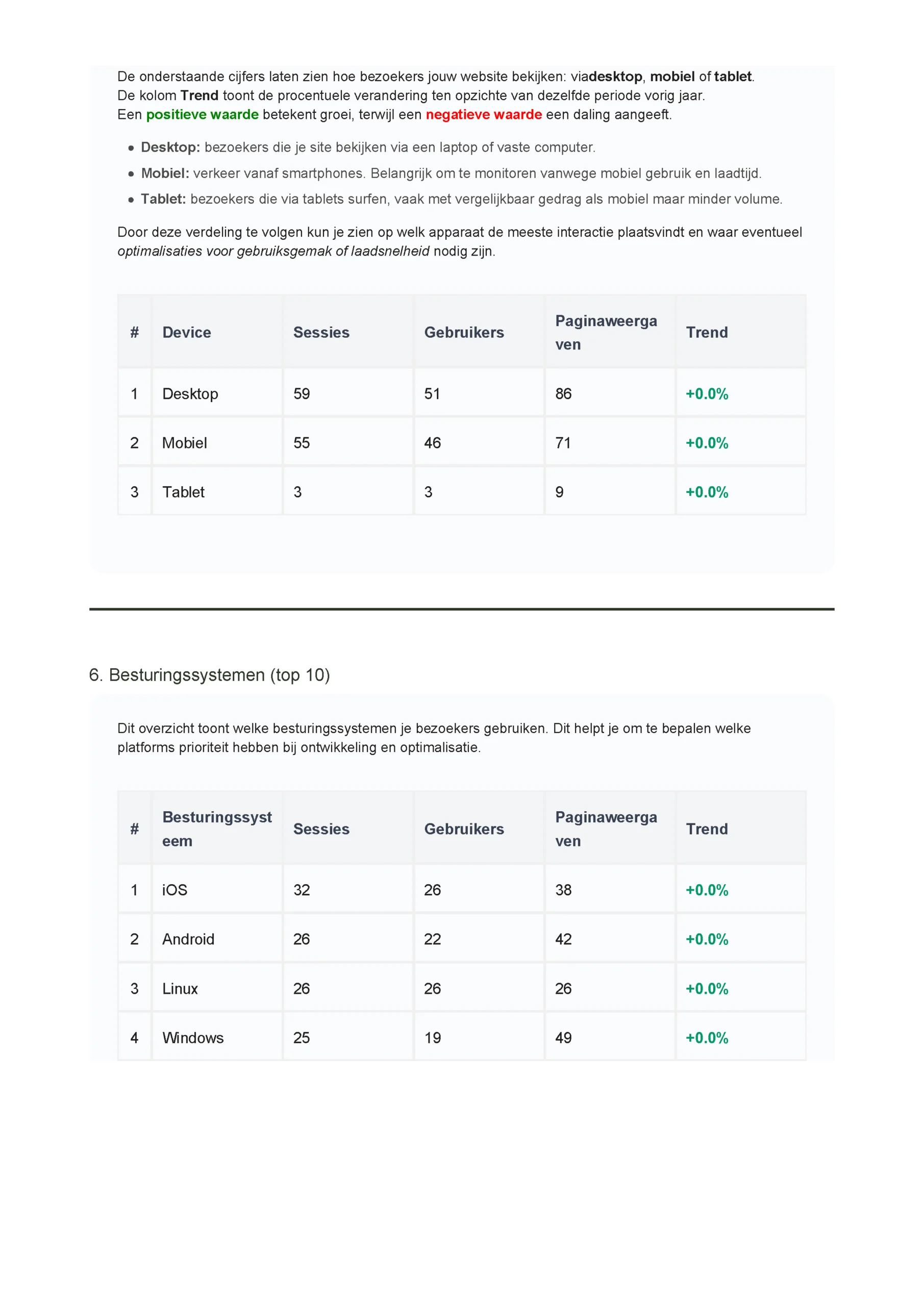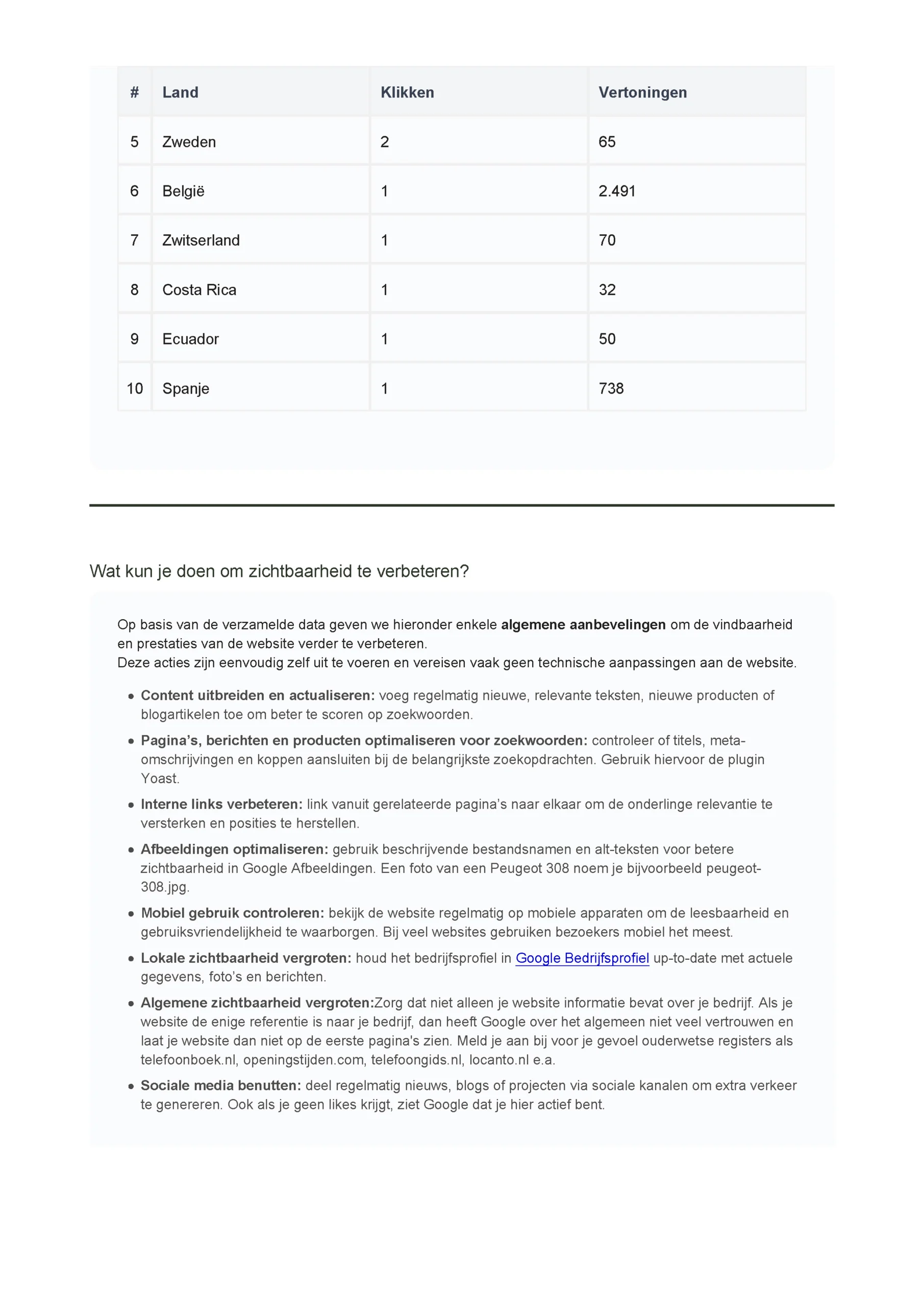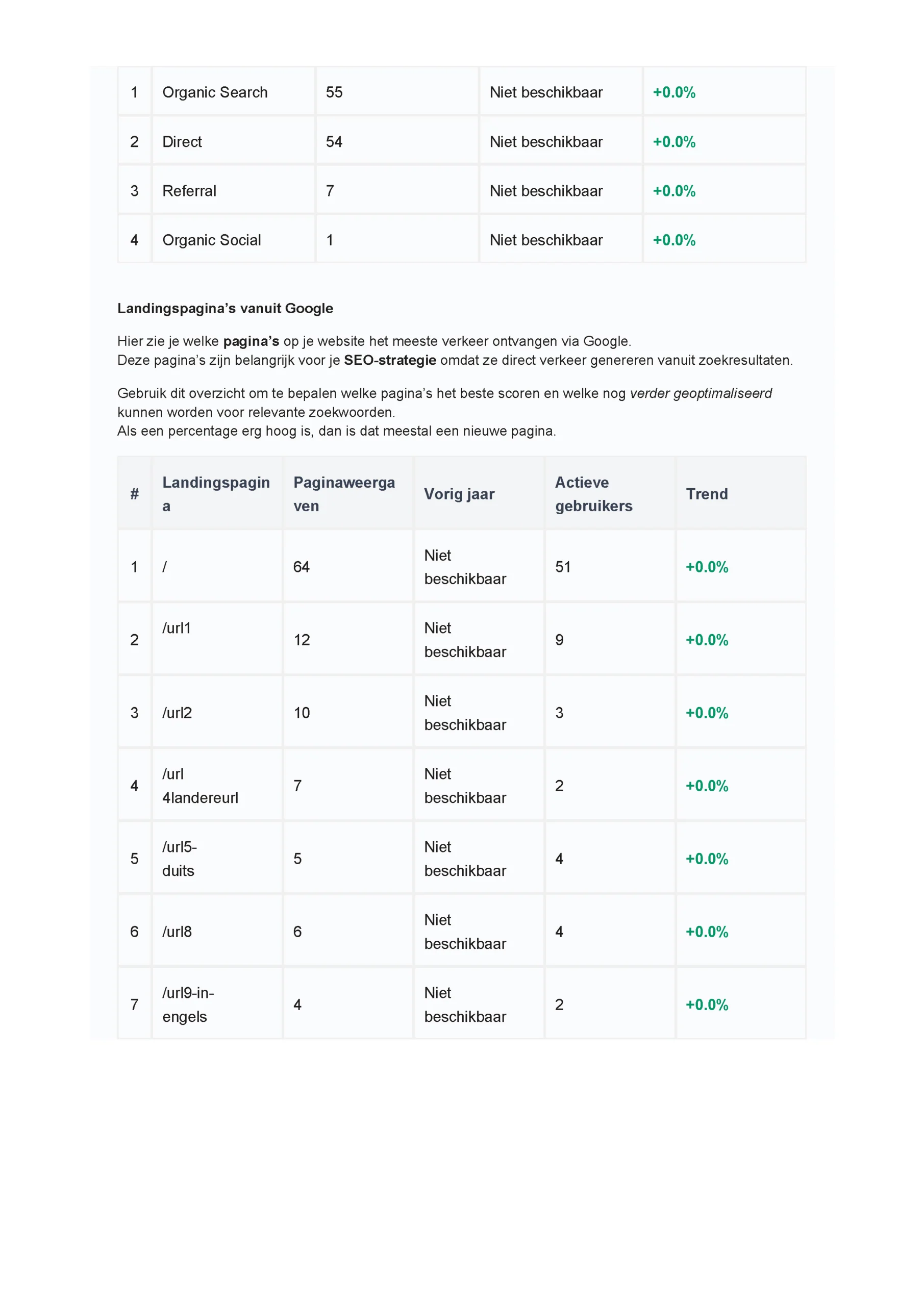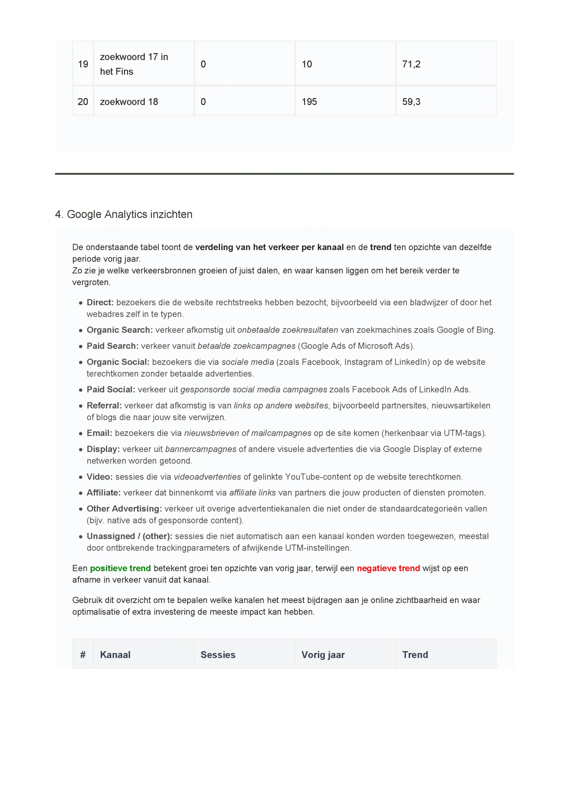 Dit rapport bestaat uit een pdf met data direct vanuit Google Analytics en Search Console.