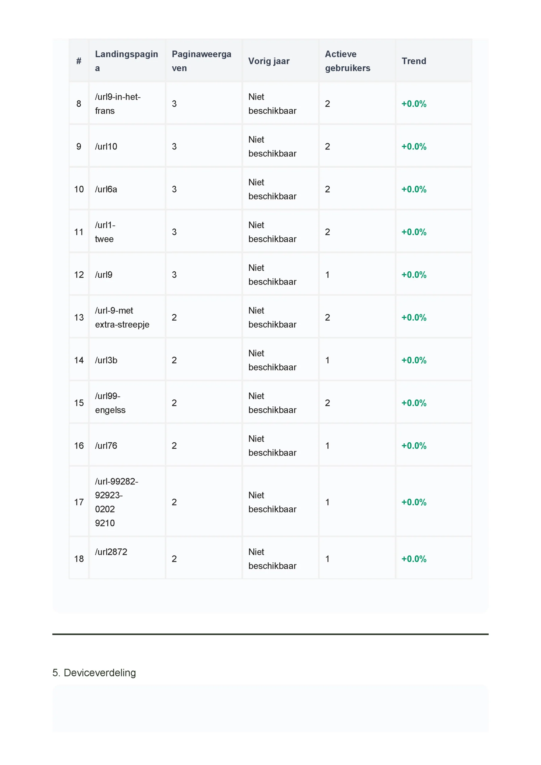Geen analyse of advies. Gewoon een duidelijke uitdraai per website.